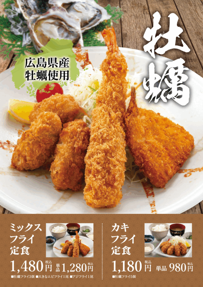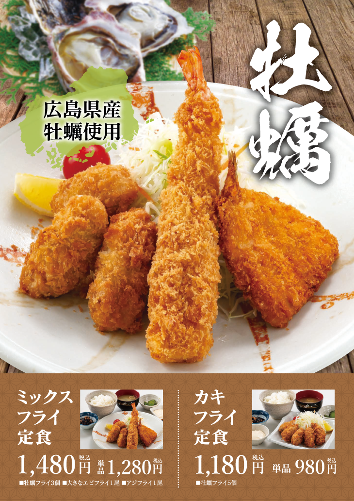ホーム お知らせ 秋メニュー販売開始しました! 秋メニュー販売開始しました! 秋メニュー販売開始しました! 九頭竜舞茸天おろしそば/うどん 850円 カキフライ定食 1,180円 単品 980円 ミックスフライ定食 1,480円 単品 1,280円 是非食べに来て下さいね(*^^)v 関連するお知らせ カキフライ販売開始のお知らせ 海の秋の味覚 9/17(土)より販売致します。 今週のイベント ★4月のイベントカレンダー★ 6月実施イベントのお知らせ