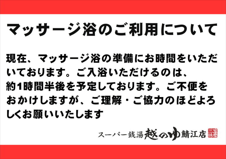ご入浴いただけるのは、約1時間半後を予定しております。
